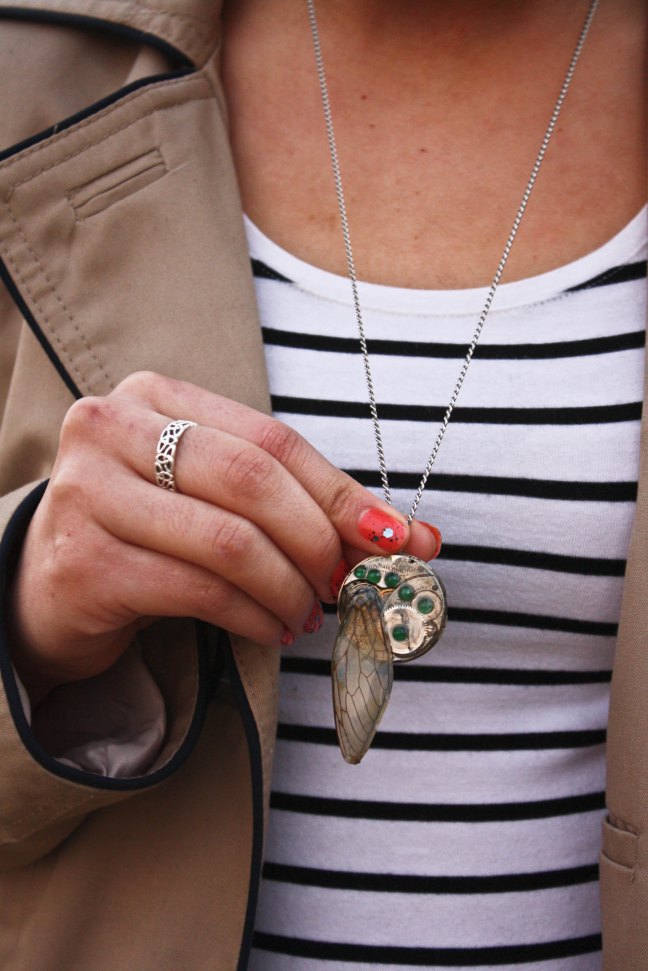 I personally LOVE anything handmade and unique, so I was really excited when I was contacted to do collaboration. I became even more excited when I saw that some of the pieces were made with butterfly wings and internal clock pieces. The owner and creator John worked closely with me to make sure my piece was one of a kind and fit my personality. The detail in the necklace is noticed right away, I have to say I was a little worried the wing was going to be fragile and might break because I’m a klutz but its actually very sturdy while still preserving the elegance and delicacy of the wing.