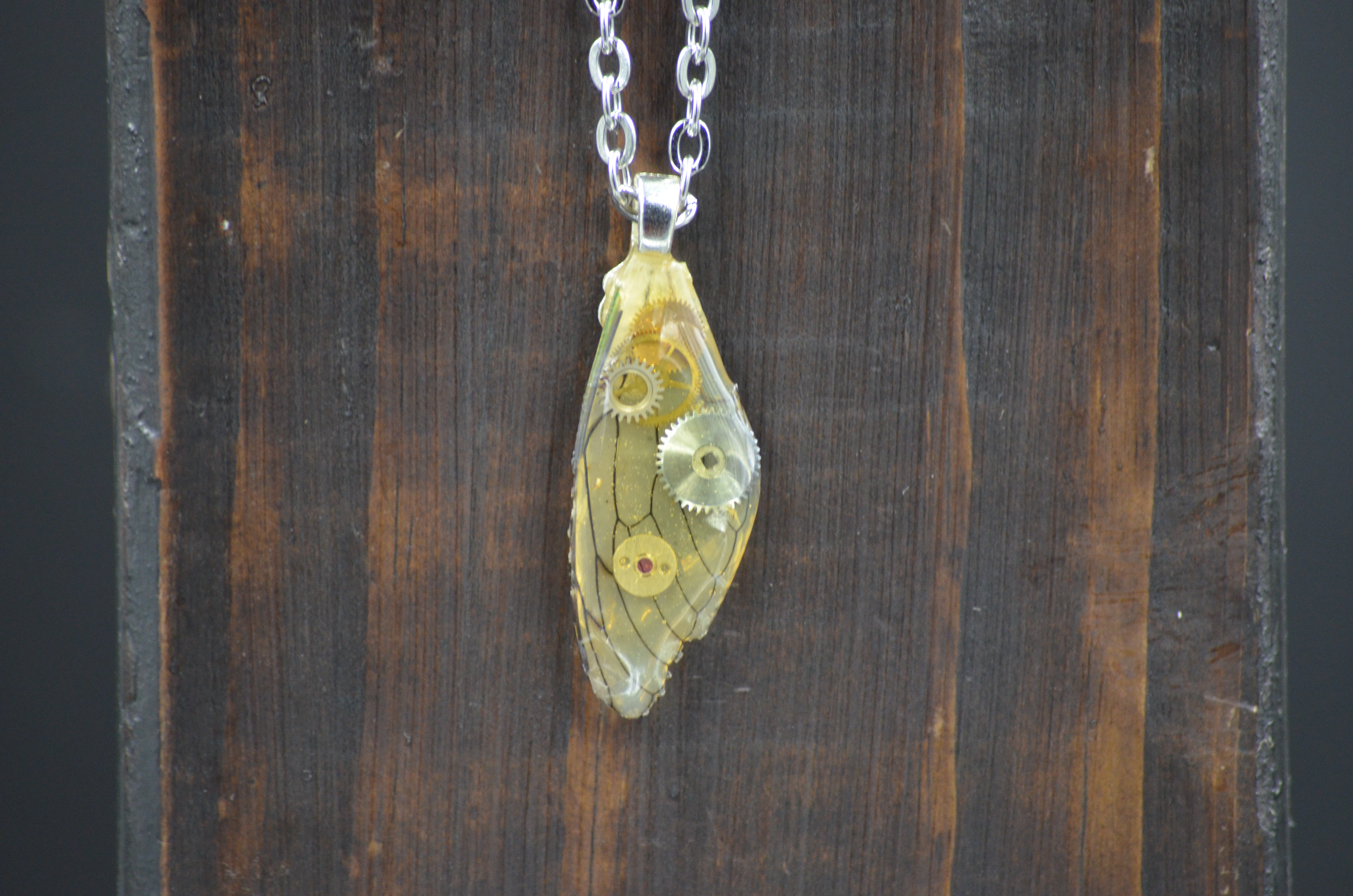 Next Previous Parts on a Cicada Wing by antiquariancouture February 16, 2024 All Jewelry, Pendants, Uncategorized antique, cicada, industrial, insect, necklace, pendant, steampunk, tiny, vintage, watch, wing Tiny watch gears and wheels are on a Cicada wing with a clear coat of resin on top of that. This hangs with a silver-plated bail and a chain. Share this: Click to share on X (Opens in new window) X More Click to share on Nextdoor (Opens in new window) Nextdoor Click to share on Facebook (Opens in new window) Facebook Click to share on Bluesky (Opens in new window) Bluesky Click to share on Threads (Opens in new window) Threads Like Loading... Related