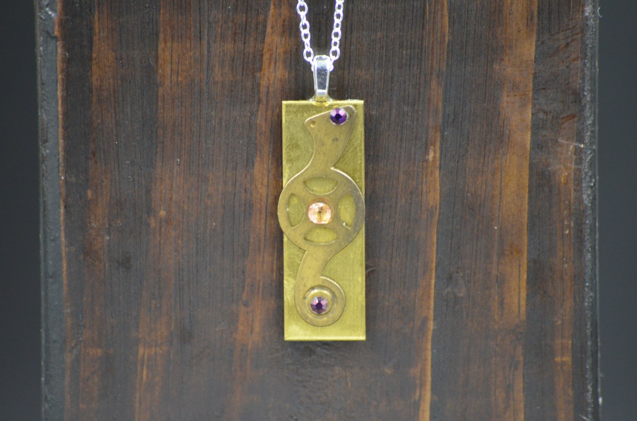 Next Previous 1700’s Watch Bridge with Topaz and Crystals by antiquariancouture February 26, 2024 All Jewelry, Pendants, Uncategorized antique, crystals, necklace, pendant, steampunk, topaz, watch A watch bridge piece from a 1700’s watch movement, sits on a piece of brass. There are two purple Swarovski crystals placed on each end and a large topaz in the center. This has a silver-plated bail and a silver-plated chain. Share this: Click to share on X (Opens in new window) X More Click to share on Nextdoor (Opens in new window) Nextdoor Click to share on Facebook (Opens in new window) Facebook Click to share on Bluesky (Opens in new window) Bluesky Click to share on Threads (Opens in new window) Threads Like Loading... Related