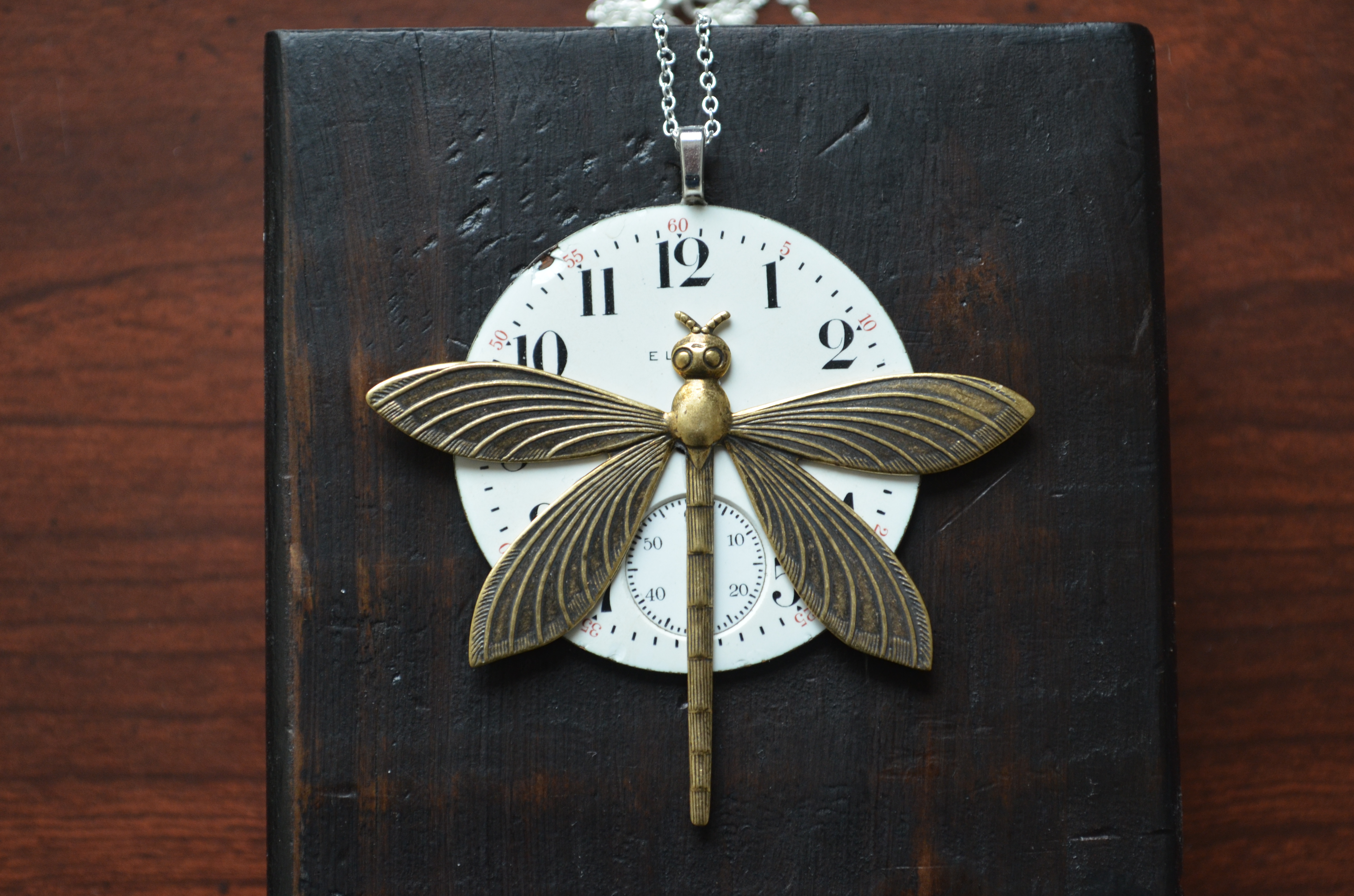 Next Previous Brass dragonfly charm on watch dial by antiquariancouture June 2, 2025 All Jewelry, Pendants, Uncategorized antique, charm, dial, dragonfly, face, industrial, jewelry, movement, necklace, pendant, steam punk, Victorian, vintage, watch An antique pocket watch dial has a brass dragonfly charm attached to the front. This has a silver plated bail on the back and hangs with a silver plated chain. Share this: Click to share on X (Opens in new window) X More Click to share on Nextdoor (Opens in new window) Nextdoor Click to share on Facebook (Opens in new window) Facebook Click to share on Bluesky (Opens in new window) Bluesky Click to share on Threads (Opens in new window) Threads Like Loading... Related