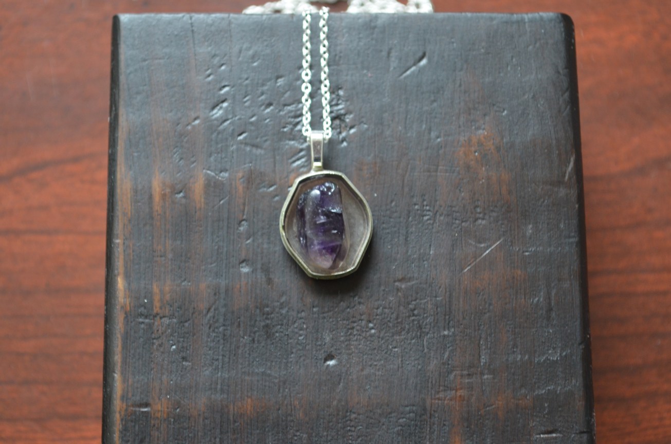 Next Previous Amethyst in watch case by antiquariancouture July 2, 2025 All Jewelry, Pendants, Uncategorized amethyst, antique, art, case, industrial, jewelry, movement, necklace, pendant, purple, steam punk, steampunk, Victorian, vintage, watch, watch case, wrist watch This small ladies wrist watch case has some resin inside and a purple chunk of Amethyst gemstone. This hangs with a silver plated bail and chain. Share this: Click to share on X (Opens in new window) X More Click to share on Nextdoor (Opens in new window) Nextdoor Click to share on Facebook (Opens in new window) Facebook Click to share on Bluesky (Opens in new window) Bluesky Click to share on Threads (Opens in new window) Threads Like Loading... Related