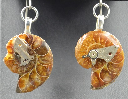 These earrings will go well with the “Ammolite with Antique Watch Parts” necklace. They were designed as a set; originally. These are smaller Ammolite fossils with a thin coat of resin and a watch plate piece on each one. The both have a silver plated […]