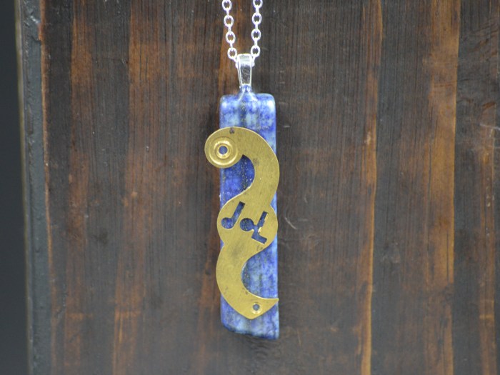 This antique gold-colored watch bridge piece, reminds me of the shape of a snake. It is fitting because the image of having a snake with anything Egyptian, goes hand in hand. This watch piece has been attached to this long piece of Egyptian Lapis Lazuli and is […]